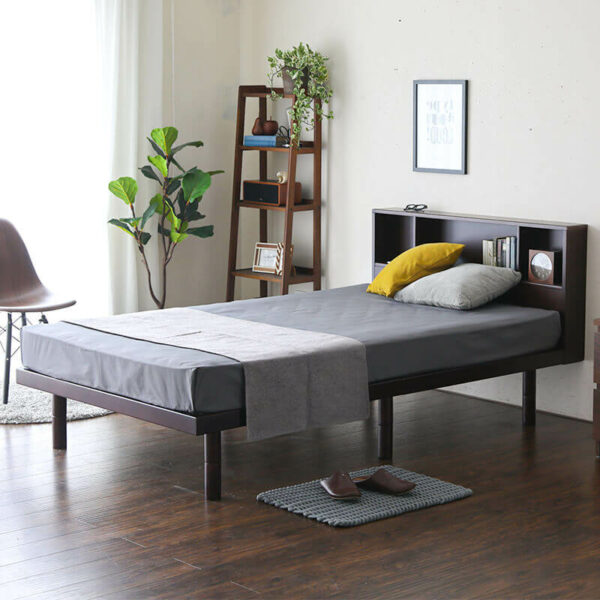 Overall. A very good purchase. I like the minimalist, clean design of the frame. The natural wood grains adds a cosy, homely touch to it. The frame is very sturdy and you can set it at 3 different heights. If you prefer a traditional Japanese bed, don’t install the legs and have it lie flat on the floor. If you prefer a low profile bed, use 1 section of the legs, and if you want a regular height bed, use both sections. The headboard is divided into 3 shelves which is great for putting things that you might want easy access to when lying on the bed. The right shelf comes with 2 Japanese power sockets and a USB socket which is handy for changing your mobile. All in all, 5 stars.