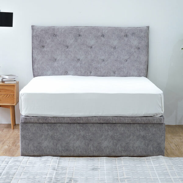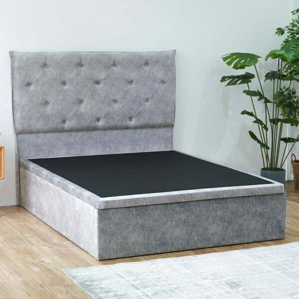 Upholstered in soft & smooth velvet with marbling. The bed frame exudes a subtle sheen. Reflects light beautifully.