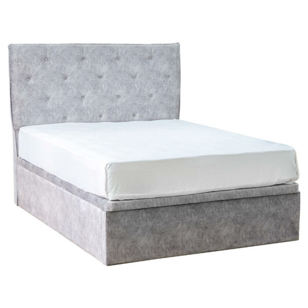The tall headboard is meticulously handcrafted with timeless button tufting & quilted edges.